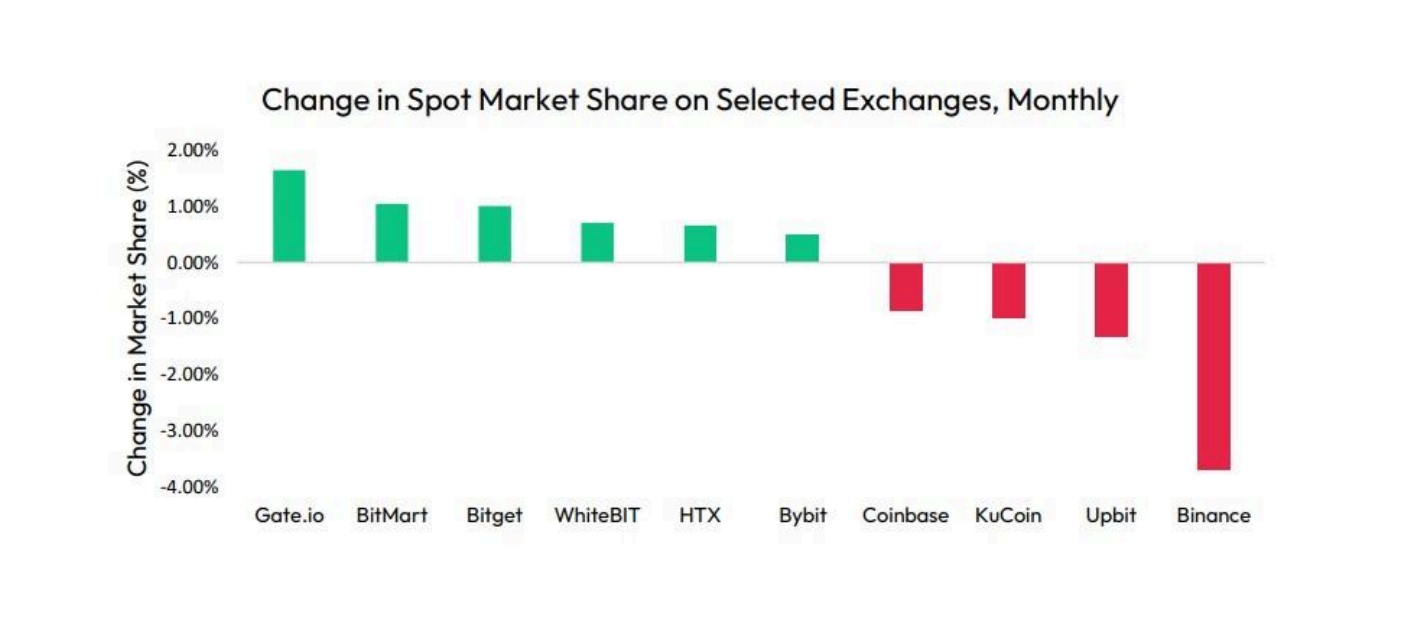 While Binance suffered a slippage, Bitget rode against the bearish tides. The exchange recorded a massive uptick in both spot and derivatives volume, extending its overall market share.